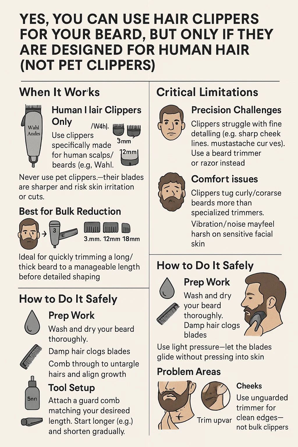 Да, вы можете использовать машинки для стрижки волос для бороды, но только если они предназначены для человеческих волос (а не для машинок для стрижки домашних животных). Вот подробное практическое руководство: