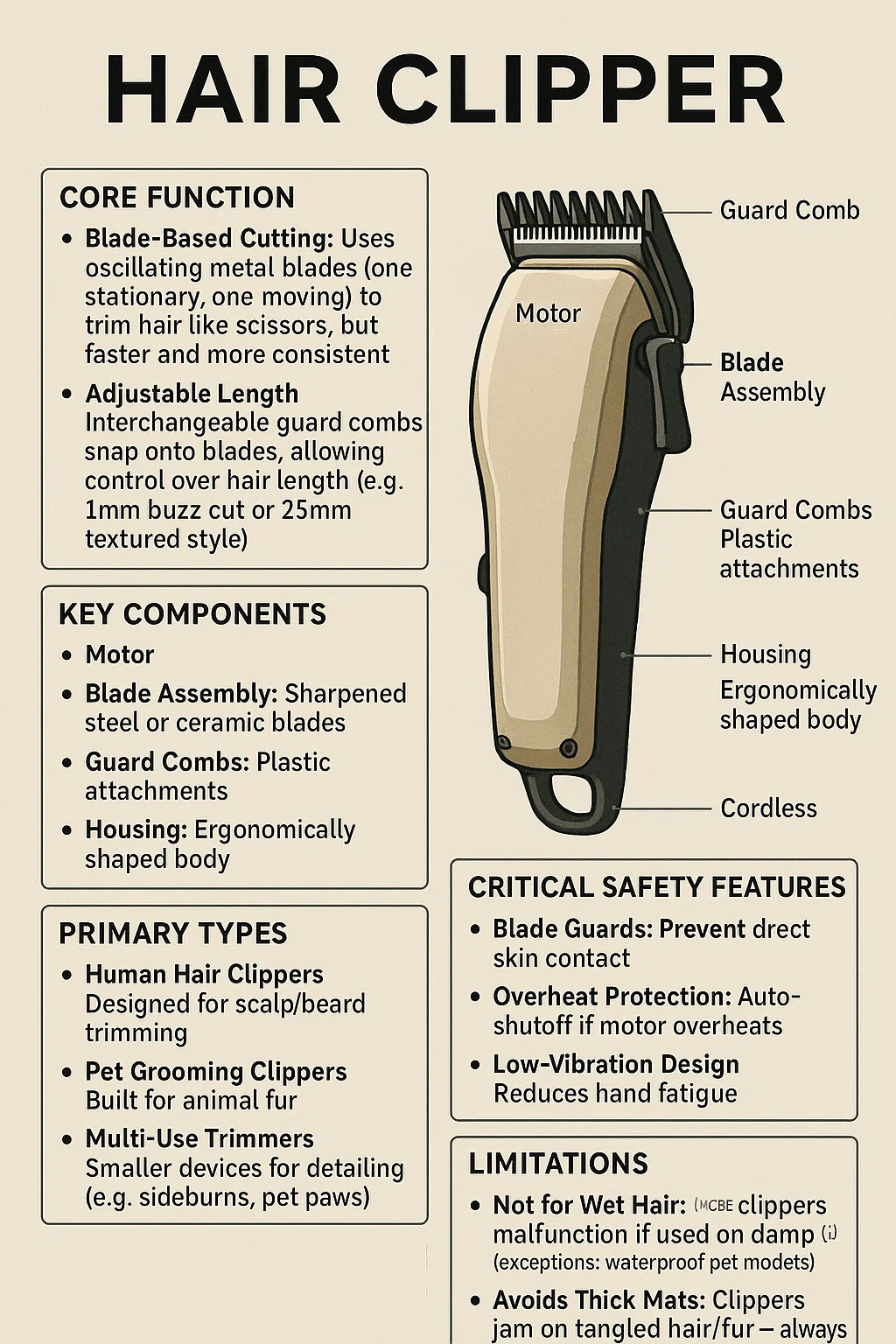 А Клиппер для волос это электрический инструмент для ухода за собой, предназначенный для эффективного и равномерно подстригать волосы. Вот подробный разбил его основных функций и использования: